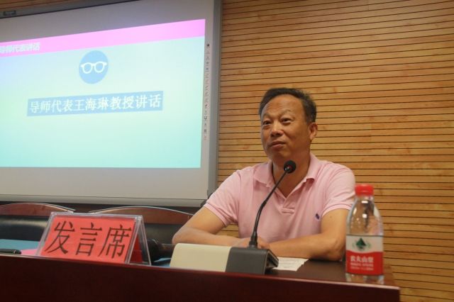 在导师代表发言环节,王海琳教授首先对新生的到来表示祝贺和欢迎,并对新生寄予了三点期望:第一,树立人生理想,要始终告诫自己为理想而求学,把报效祖国与完善自我发展相结合。第二,要做一位须臾而进的思想人,理想是美好的,但学习生活是平淡的,我们要习惯“四点一线的生活”,努力做学问。第三,要尽快实现角色的转变,正视研究生生活和本科生生活的差别,并希望大家要尽快适应新的环境,开始新的生活。