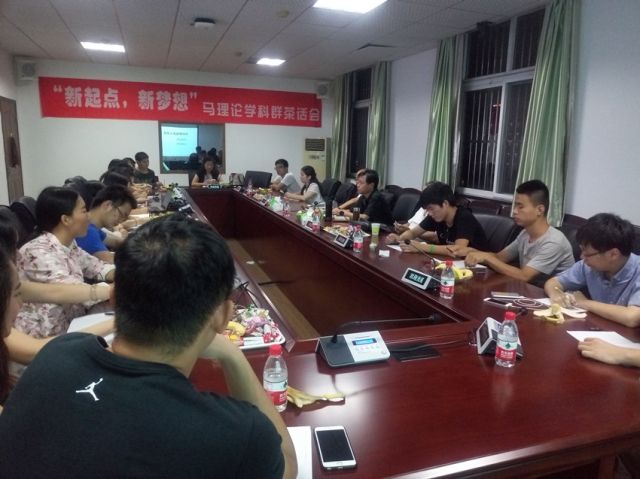 (通讯员 杨健)2016年9月22日晚,马克思主义基础理论学科群在文沛楼402会议室召开师生茶话会。本次会议由王建辉教授主持,龚先庆院长、胡贤鑫教授、吴亚平副教授以及马克思主义基础理论学科群全体学生参加了本次活动。