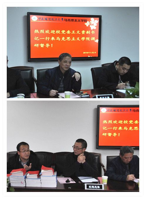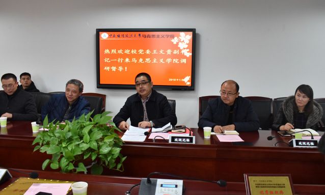 (通讯员 张慧仙 摄影 夏德彬)2018年1月2日上午,校党委副书记王文贵、组织部部长杨红侠一行到马克思主义学院进行“二级党组织书记述职评议”调研督导并召开座谈会。马克思主义学院党委班子成员及部分师生代表、党外人士代表参加了本次会议。