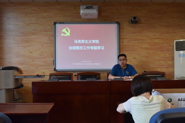 (通讯员 张慧仙 摄影 夏德彬)为深入学习贯彻习近平新时代中国特色社会主义思想和党的十九大精神,深入推进“两学一做”学习教育常态化制度化建设,深入学习习近平总书记关于巡视工作重要论述和十九届中央第一轮巡视、教育部党组2018年巡视工作重要会议精神,马克思主义学院于2018年7月13日上午在文沛楼409会议室开展了巡视整改工作专题学习。活动由赵凯书记主持,全体党员教师和党员学生共同参加。