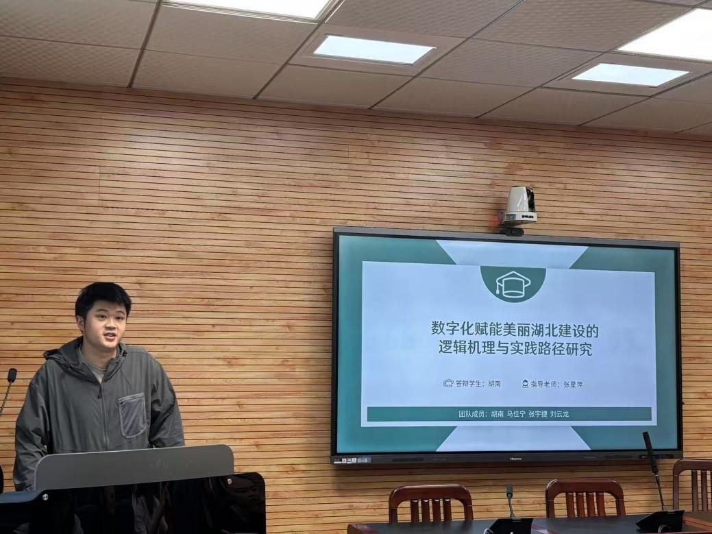 胡南同学以《数字化赋能美丽湖北建设的逻辑机理与实践路径研究》为题,聚焦“数字中国”与“美丽中国”战略,深入探讨了技术赋能、制度创新与多元协同的内在逻辑,展现了马院学子运用专业理论关切现实发展难题的学术视野。