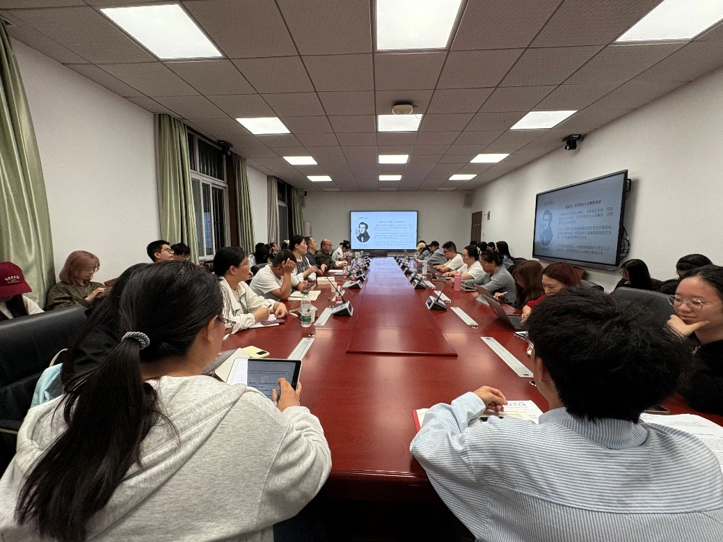 (通讯员 冯阳洋 摄影 聂佳影)为深入学习贯彻习近平新时代中国特色社会主义思想,推动党史学习教育常态化长效化,营造浓厚书香马院氛围,9月24日晚,马克思主义学院、社会主义核心价值观研究中心在文沛楼402会议室举办了“读懂中国·红色马院”系列讲坛暨2025年第八期“读懂马克思”系列读书交流会。本次活动围绕《论犹太人问题》展开研读,特邀武汉大学哲学院周可教授主讲,中南财经政法大学马克思主义学院教授龚先庆主持,我院教师王益、陈兴耀、邹胜男及2024级、2025级硕士研究生共同参会学习。
