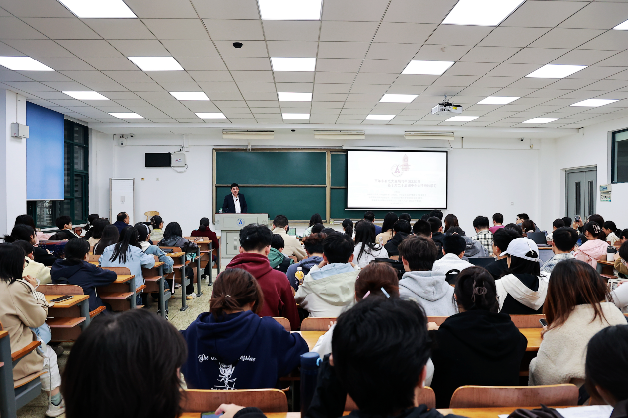 (通讯员 石敬琳 摄影 崔桢桢)10月28日晚,校党委常委、副校长刘仁山教授在文泰楼303教室,为国际法及涉外法治专业本科生讲授《百年未有之大变局与中国之因应——基于对党的二十届四中全会精神的学习》思政课。本科生院、马克思主义学院、国际法学院部分领导和教师现场听课并参与讨论,全场座无虚席、气氛热烈。