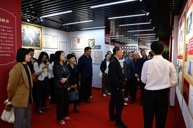 展厅内,从早期马克思主义经典著作的珍稀版本,到记录马克思主义中国化重大理论成果的文献档案,每一份展品都承载着厚重的历史与思想力量。师生们驻足凝视、仔细研读,在文献与史料的交织中,直观感受马克思主义穿越时空的真理力量,深刻理解“两个结合”的思想脉络与实践意义。
