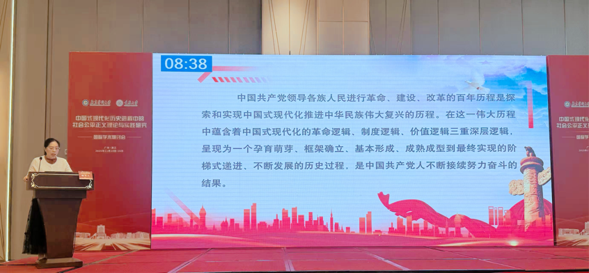 此次学术研讨会由开幕式、主旨报告、平行论坛和闭幕式组成。广东医科大学党委副书记黄达海,广东医科大学党委书记、校长卢景辉,中国辩证唯物主义研究会公平正义研究专业委员会会长冯颜利,中美后现代发展研究院副院长、研究员克里福德•柯布(Clifford Cobb),中国社会科学院马克思主义研究院纪委书记、副院长陈志刚,美国过程研究中心执行主任威廉 • 安德鲁 •施瓦茨(William Andrew Schwartz),《观察与思考》主编黄宇,《学习论坛》主编薛瑞汉,中国人民大学哲学院兼职教授薄国强(Roland Theodore Boer)等领导和嘉宾出席。其中,在平行论坛一,由中南财经政法大学马克思主义学院教授倪瑞华作为发言人,深刻阐述了“中国式现代化历史演进的深层逻辑”。与会学者围绕党的二十届四中全会精神,深刻把握进一步全面深化改革和中国式现代化的理论与实践逻辑,推进社会公平正义研究及中国政治哲学自主知识体系的建构等议题进行了热烈的研讨。