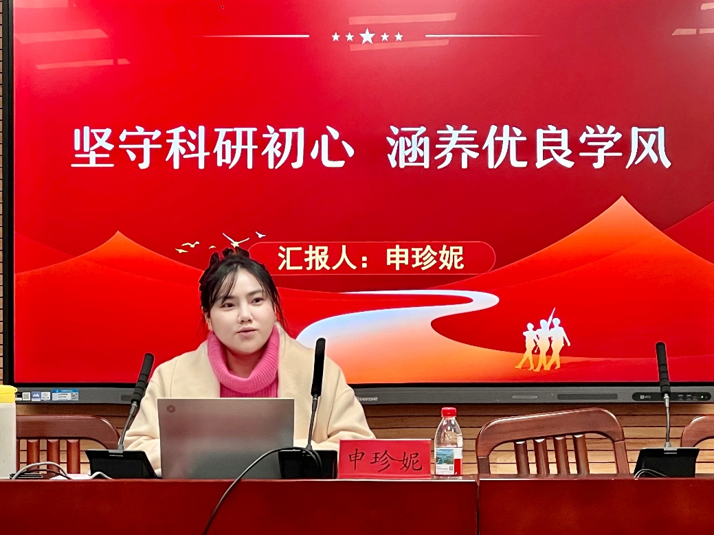 (通讯员 冯阳洋 摄影 余卿卿)为全面贯彻习近平新时代中国特色社会主义思想,深入学习领会党的二十届四中全会精神,着眼统筹教育强国、科技强国、人才强国建设,马克思主义学院于12月2日晚在文沛楼409会议室举行了以“坚守科研初心,涵养优良学风”为主题的研究生科学道德和学风建设宣讲教育系列活动。本次活动特邀我院青年教师、2025级研究生班主任申珍妮主讲。马克思主义学院2025级全体硕士研究生参加。