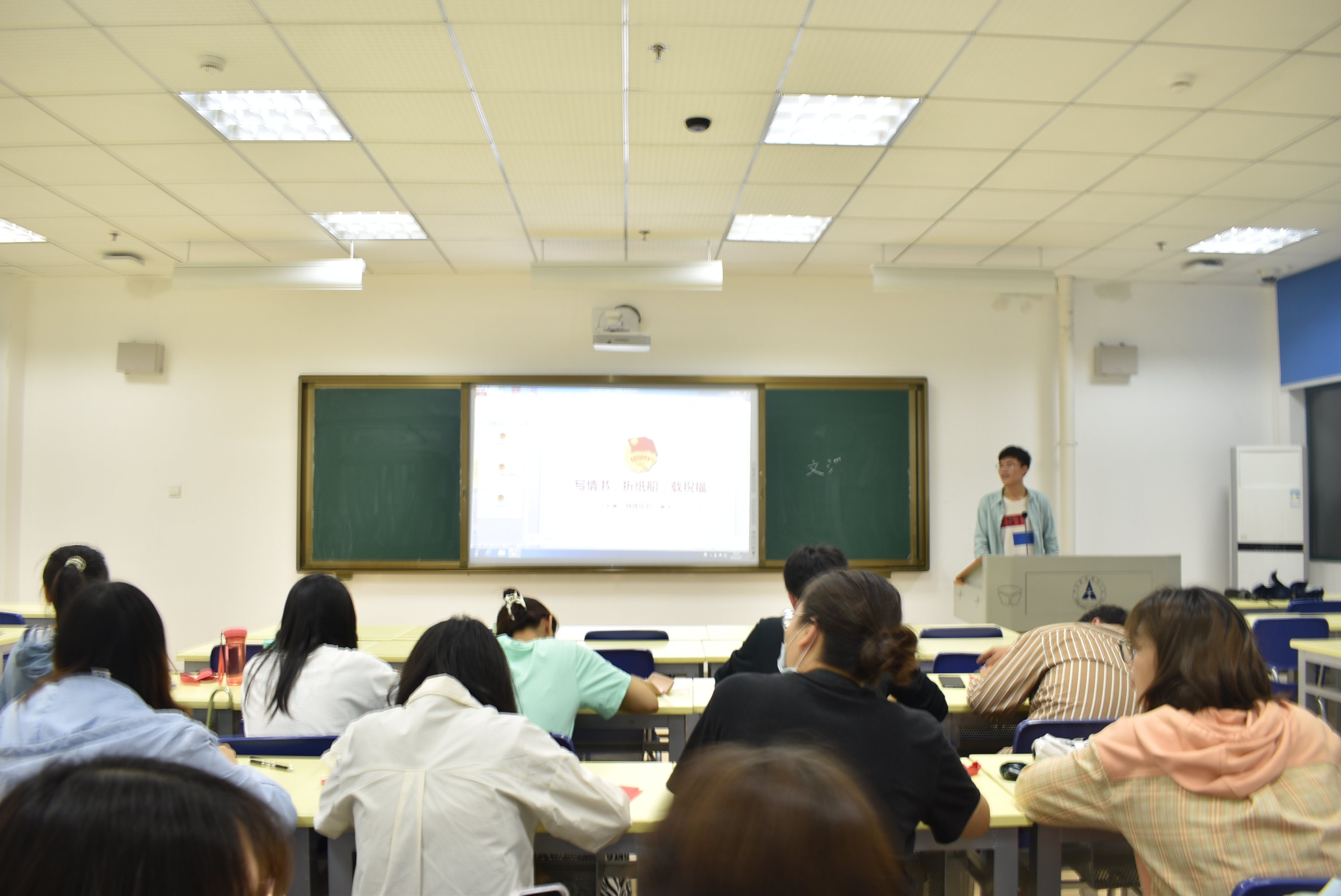 最后,吕小慧同学代表文体部和同学们开展了“写情书、折纸船、载祝福”的活动,通过在纸船上写下对党的祝福为建党百年献礼。