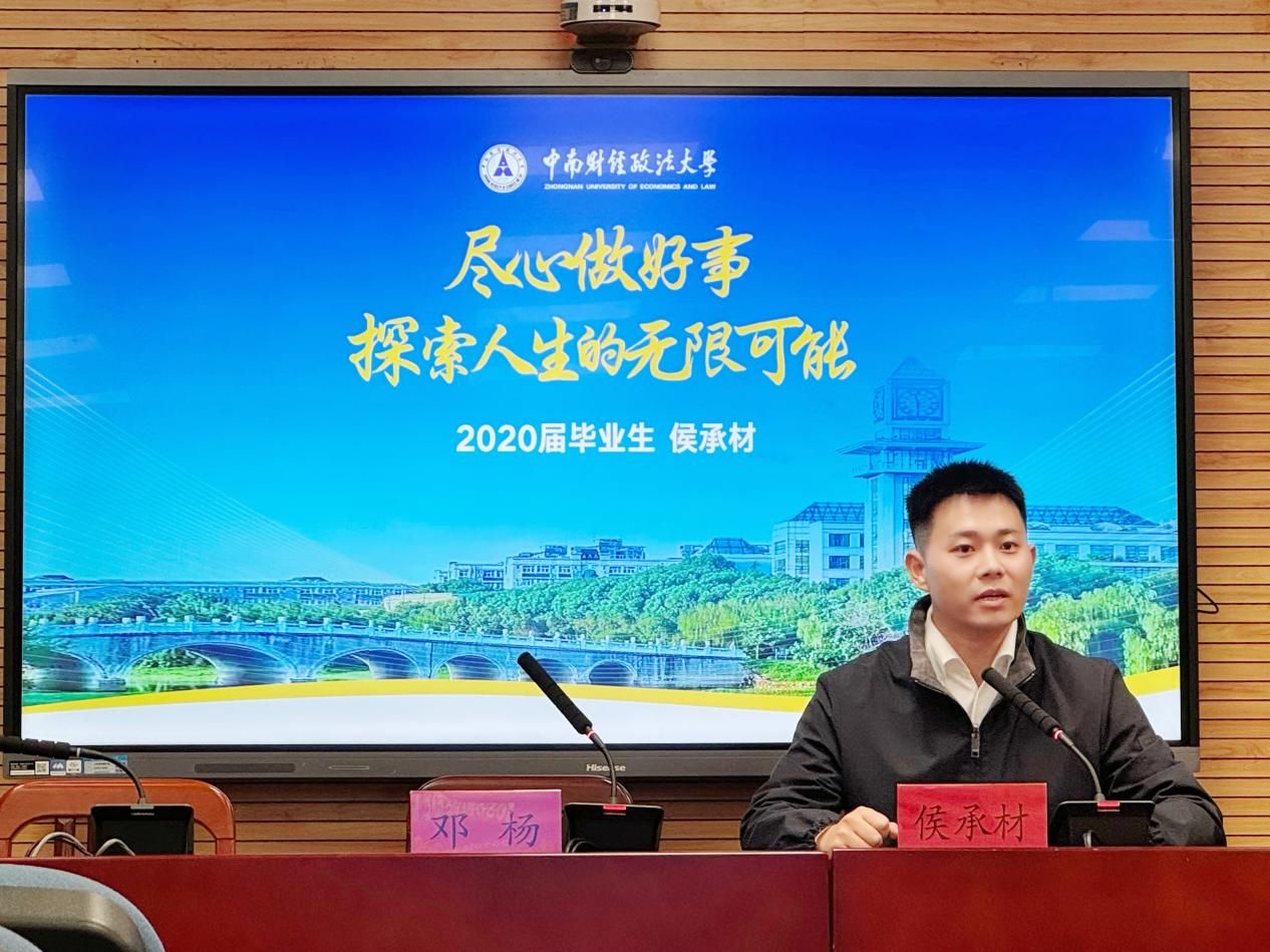 活动最后,邓杨书记作总结发言,再次对侯承材校友的精彩分享和长期以来对学院的关心支持表示衷心感谢,并勉励全体在场研究生,要珍惜在校时光,认真汲取优秀校友的成功经验,明确目标,勤于实践,将感悟转化为行动,努力成长为堪当民族复兴大任的时代新人。