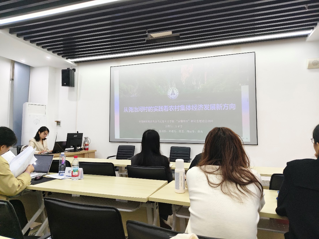 校外指导老师王子秦首先以《从尧治河村的实践看农村集体经济发展新方向》为题作示范宣讲。该课程为全国高校青年宣讲联盟精品课程,他以湖北省襄阳市保康县尧治河村的发展历程及成就为例,生动阐释了该村在自然条件与地理区位均不占优势的背景下,如何通过发展新型农村集体经济实现跨越式发展。整场宣讲逻辑严密、案例扎实,实现了理论阐释与典型实践的深度融合,为与会成员呈现了一堂高质量的宣讲示范课。