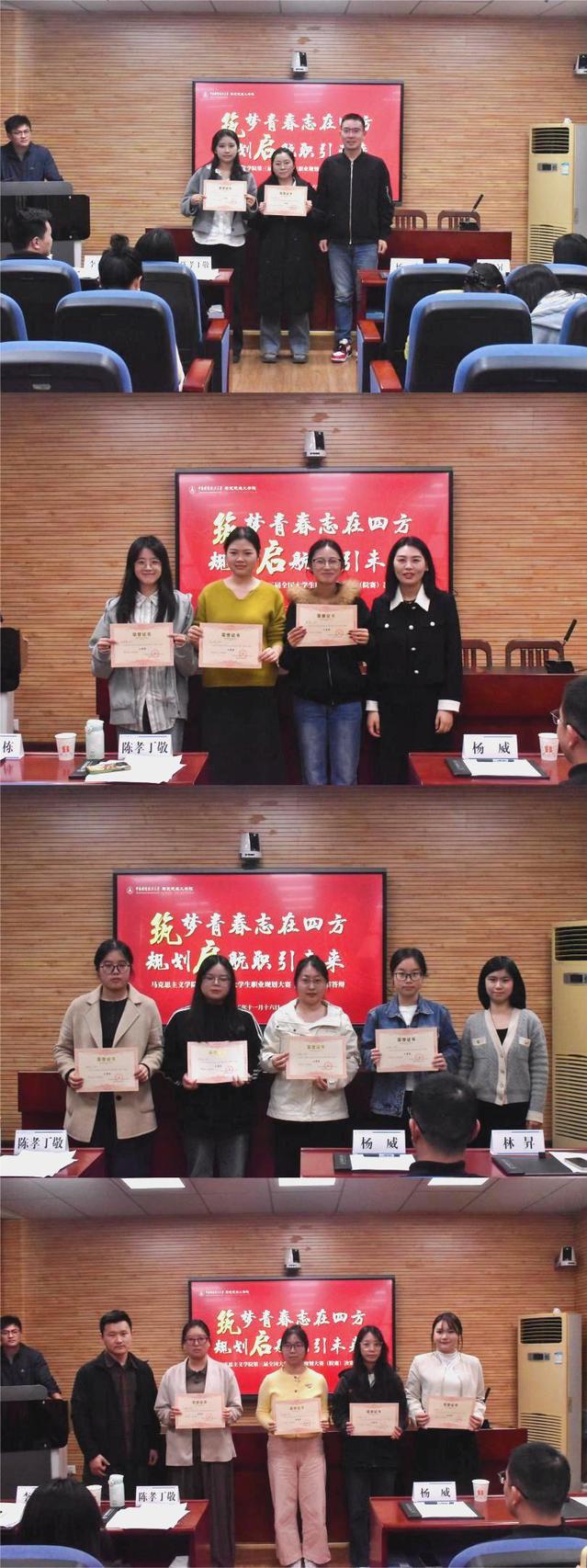 (通讯员 仇欣彤 摄影 覃东黎)为强化生涯教育与就业指导,提升职业规划能力,促进高质量就业,马克思主义学院于11月16日在文沛楼409会议室开展以“筑梦青春志在四方,规划启航职引未来”为题的第三届全国大学生职业规划大赛(院赛)决赛答辩活动。活动特邀党委研究生工作部研究生管理办公室主任杨威、信息工程学院团委书记陈孝丁敬、党委学生工作部思政办 林昇以及马克思主义学院研究生工作办公室副主任李祥栋担任评委,马克思主义学院2024级、2025级研究生参与此次活动。