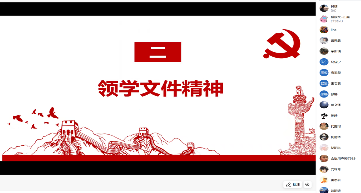 (通讯员 付雄 摄影 付雄)为深入学习贯彻党的二十届四中全会精神以及习近平总书记重要讲话精神和重要指示精神,严格落实上级党组织相关工作部署,11月24日下午,马克思主义学院研究生第三党支部以线上会议形式召开“深学细悟党的二十届四中全会精神,凝心聚力推动学校改革发展”主题党日活动。本次活动由盛辰文同志主持,2023级学生党员参加。