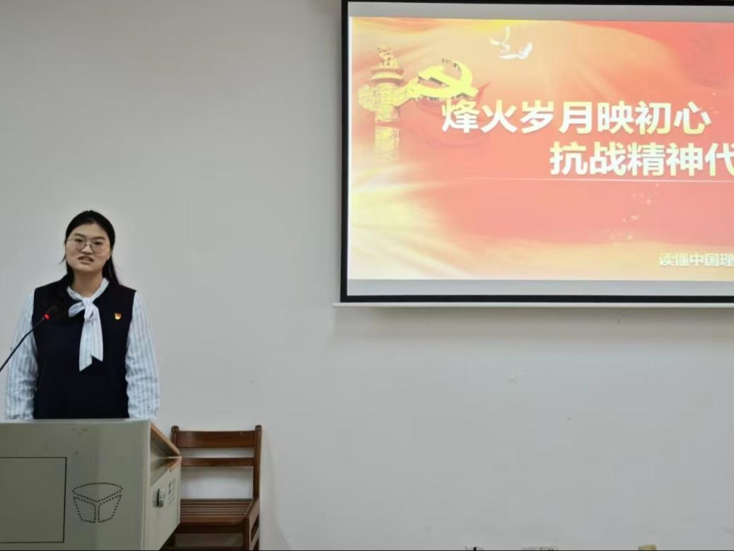 在理论宣讲环节,朱子琳紧扣纪念中国人民抗日战争暨世界反法西斯战争胜利80周年的时代背景,深刻阐释了伟大抗战精神的丰富内涵与时代价值。她通过生动讲述课本中耳熟能详的抗战英雄事迹,带领学员们重温那段烽火连天的峥嵘岁月,深刻感悟革命先辈们以身许国的坚定初心与崇高信仰,引导青年学子从英雄的选择中探寻精神密码,从历史的回响中汲取奋进力量。