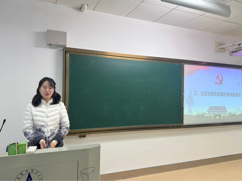 其后,宣传委员兼纪检委员陈思代表支部委员会报告对相关发展对象的审查情况,并建议大会接收5名发展对象为中共预备党员