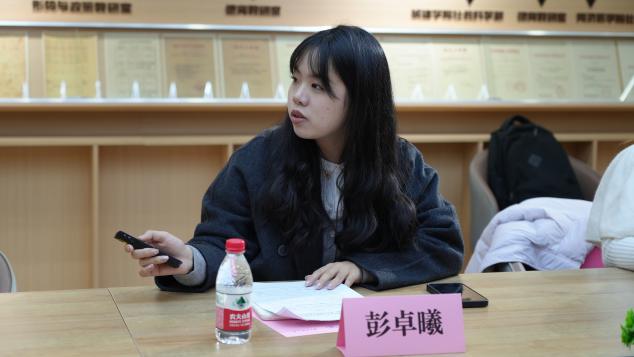 我院“读懂中国”研究生理论宣讲团团长彭卓曦从宣讲团成立背景到组织架构等方面,介绍了我团整体发展情况。我团始终坚持深入宣讲一线,传递时代强音,并重视“内容为王”,注重课程的深度打磨与体系化建设,致力打造一批“听得进、记得住、用得上”的理论宣讲精品,并分享了团队在课程建设、品牌塑造等方面的实践。