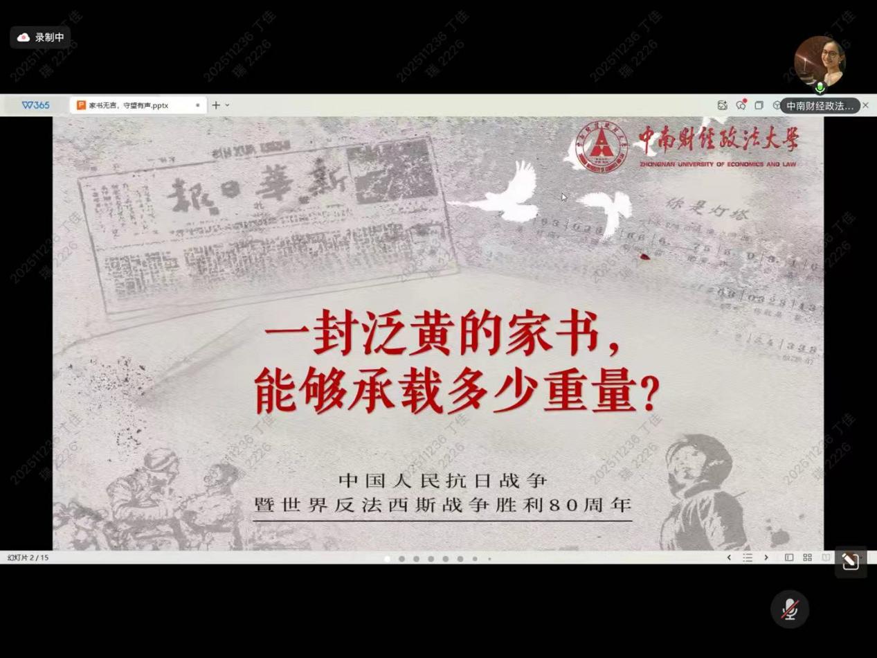 随后,仇欣彤以《家书无言,守望有声》为题带来宣讲。她以一封跨越87年的苏联飞行员家书为叙事线索,娓娓道来三代人的血脉守望,也勾勒出中俄两国跨越时空的深厚友谊。宣讲以战士的临终嘱托、家庭的漫长等待、历史的庄严铭记为脉络层层递进,深刻阐释了一封家书所承载的和平之愿、友谊之深与责任之重。
