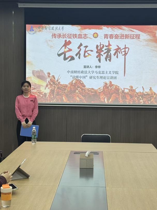 (通讯员 钱丹丹 彭卓曦)为深入学习贯彻长征精神的时代内涵,进一步提升宣讲团成员的备课质量与宣讲水平,3月31日晚,中南财经政法大学马克思主义学院“读懂中国”研究生理论宣讲团于文翰北楼405室成功召开“长征精神”专题备课会。宣讲团全体成员参加此次会议。