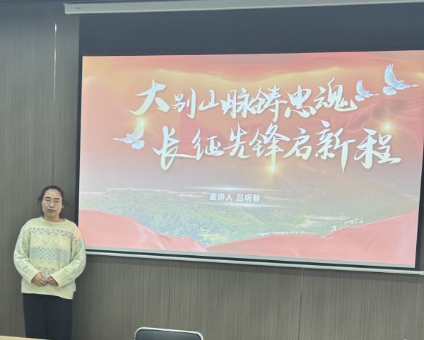 在同学展示环节,四位主讲人依次进行了精彩的分享。吕昕馨同学以“大别山脉铸魂,长征先锋启新程”为主题,梳理了长征精神形成的艰苦历程,阐述了其作为中国共产党人精神谱系重要组成部分的深刻意义。朱子琳同学聚焦于“传承长征精神,做新时代的‘播音员’或‘观众’”,从青年视角探讨了在新时代如何主动讲述与自觉弘扬红色精神。殷文一同学以“大别山与长征”为主线,分析了特定地域革命斗争与长征全局的关联,丰富了大家对长征历史多维度的理解。最后,李烨同学围绕“长征精神之歌”的比喻,生动诠释了长征精神跨越时空的持久感染力与传承必要性。四位同学的展示准备充分、角度新颖、逻辑清晰,展现了宣讲团成员前期自主学习的深入思考。